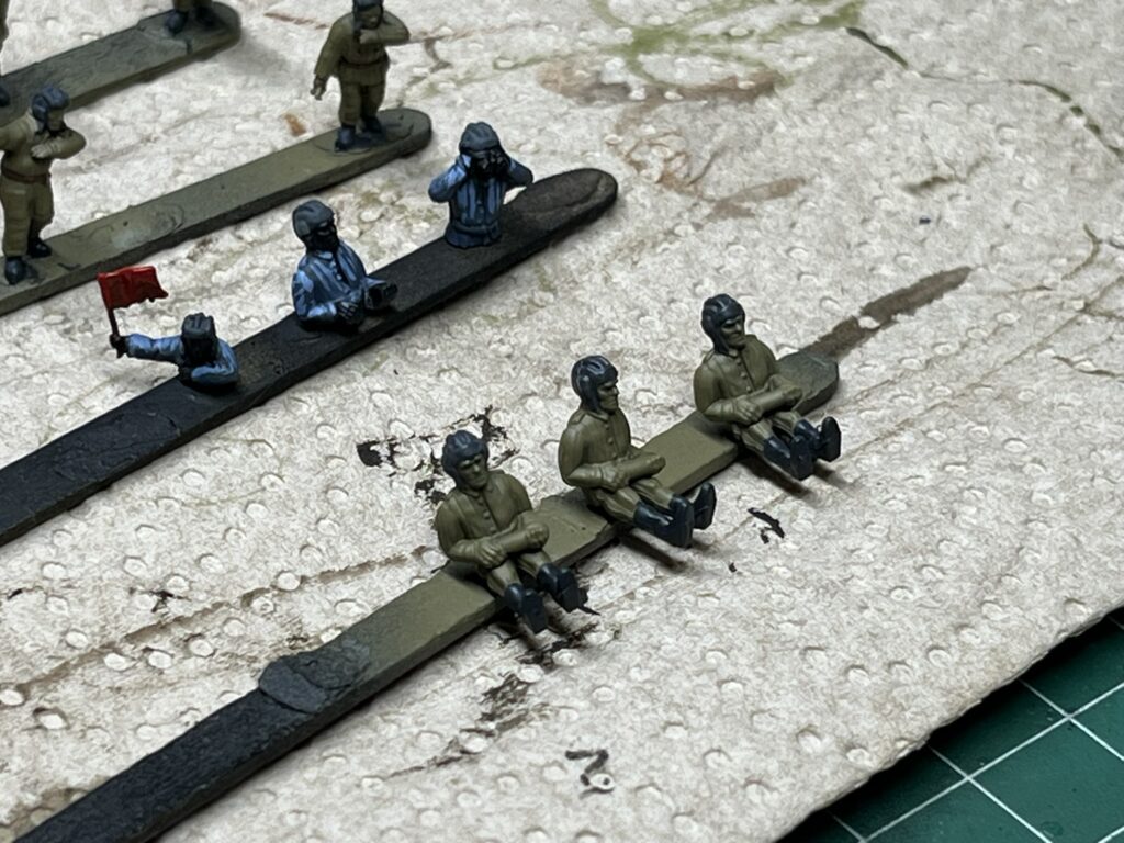 Obwohl der T-34 und die SU-76 noch nicht ganz fertig sind, musste ich zur Abwechslung mal wieder etwas anderes auf dem Maltisch haben. Also habe ich mir kurzerhand die Panzerbesatzungen vorgenommen, die ohnehin demnächst dran gewesen wären. Die Bemalung erfolgt dabei nach meiner eigenen Bemalanleitung.