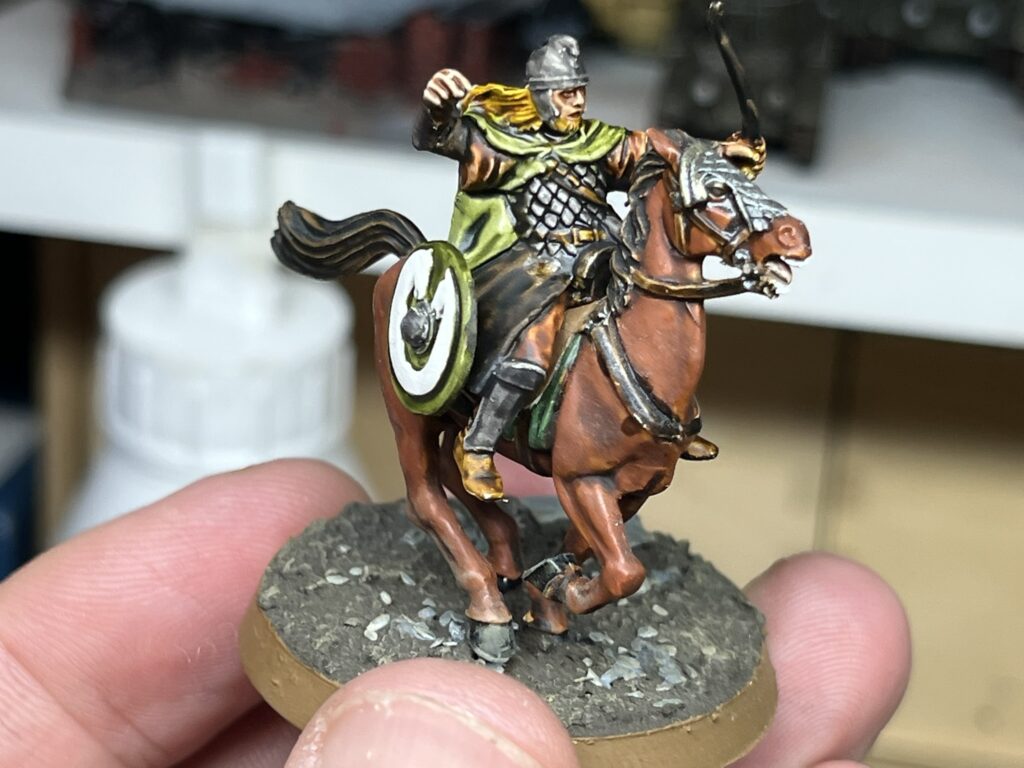 MESBG: Rohan 21. November 202521. November 2025 becko Bemalung, Games-Workshop, MESBG Gesternabend konnte ich wieder mit meiner Tochter ein wenig malen und jeder von uns hat mit den Contrastfarben von Citadell eine Miniatur fertigstellen können. Ich meinen zweiten Reiter und meine Tochter den zweiten Krieger.