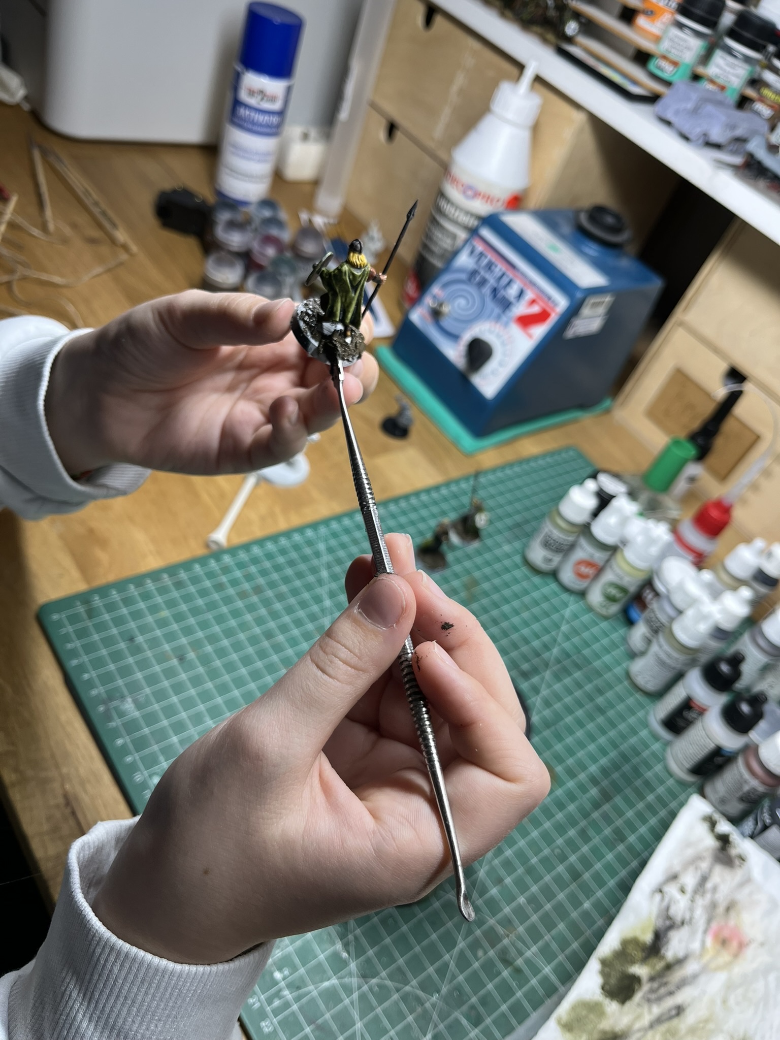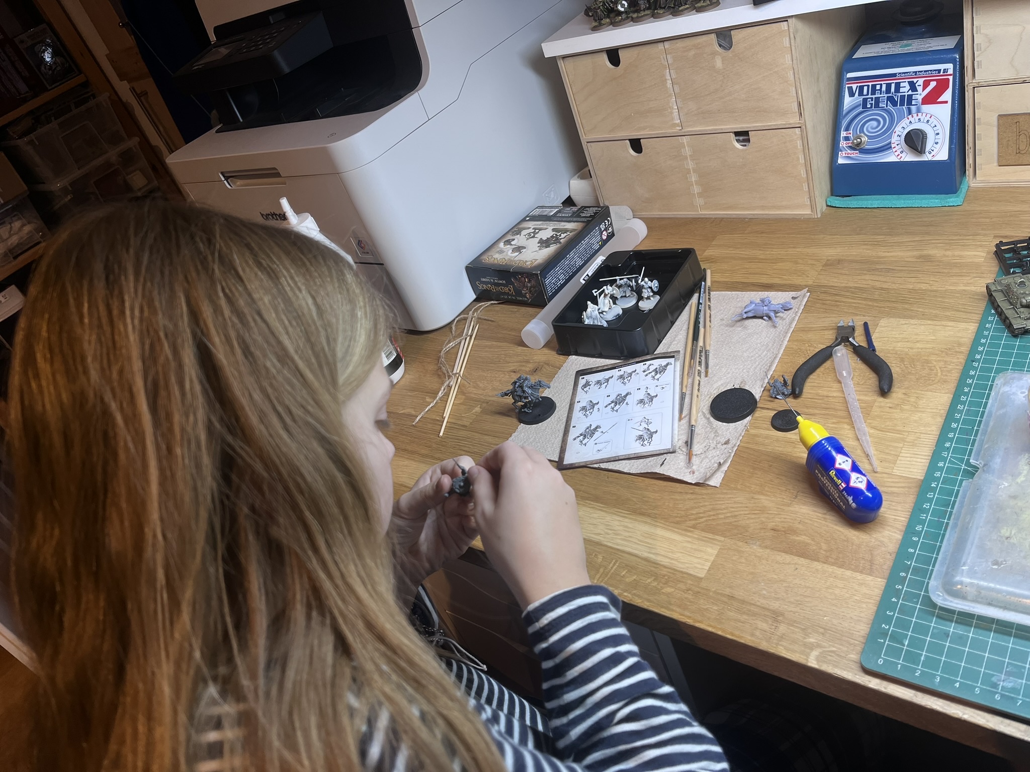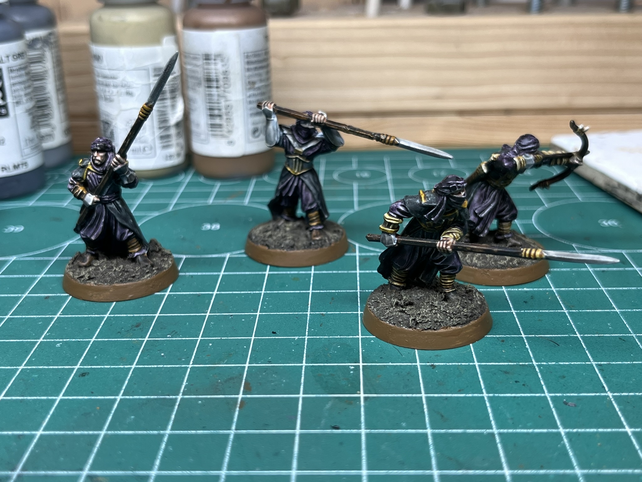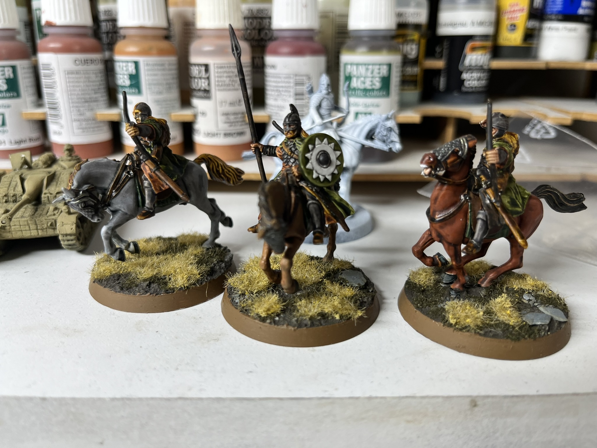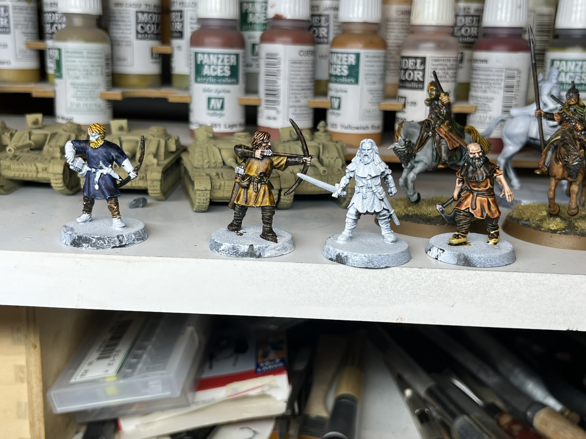 Momentan malen wir in der Familie Abends gemeinsam an unseren MESBG Miniaturen. Meine große Tochter hat vom Nikolaus Eowyn und Merry bekommen und meine Frau malt ihre Haradrim Stück für Stück weiter. Für unsere kleine bemale ich ein paar Schurken und Dunländer.