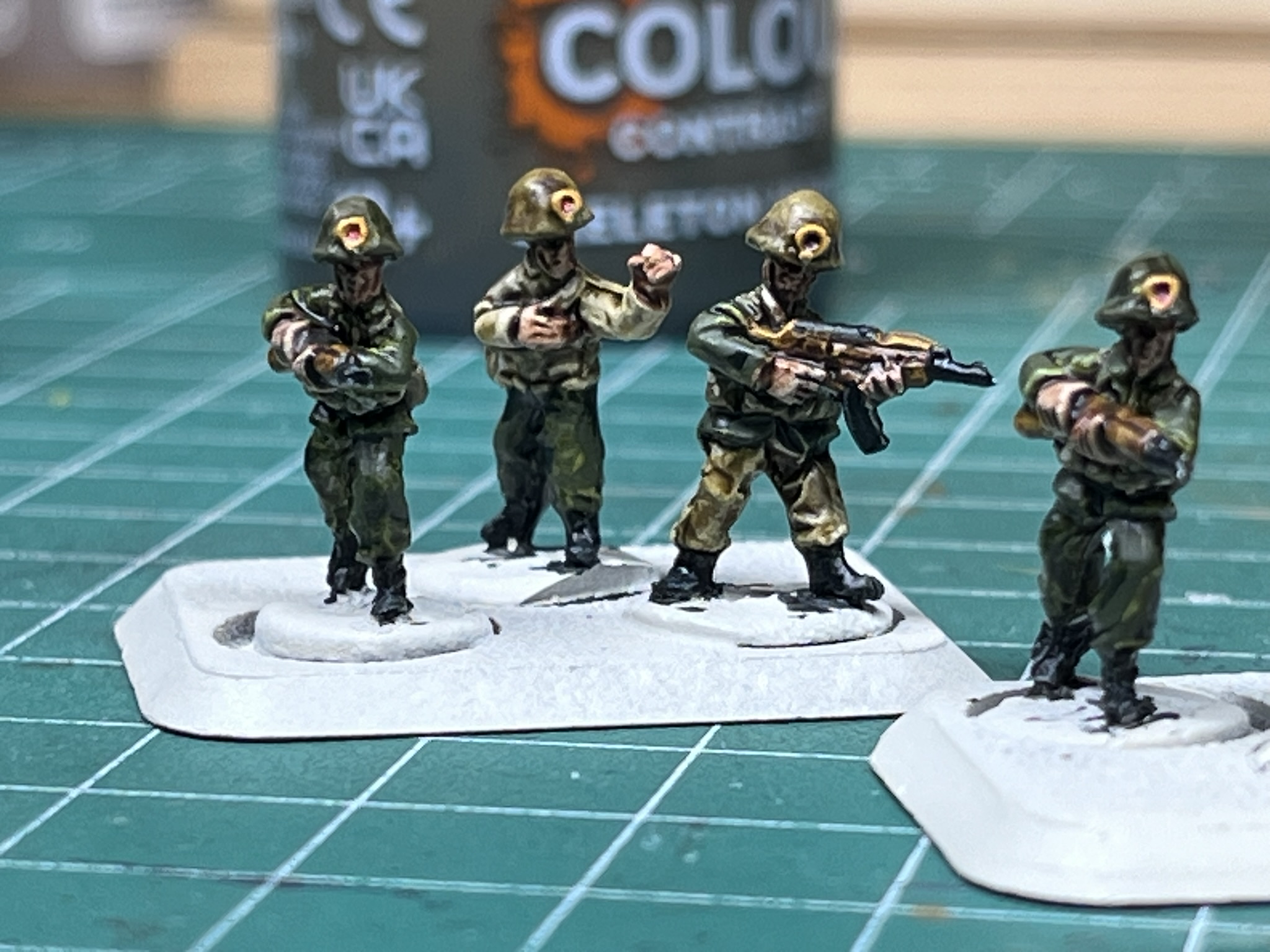 Die drei zusätzlichen Teams für meine ‚NAM PAVN (People’s Army of Vietnam) sind von der Grundbemalung fertig. Es fehlt nun noch die Basegestaltung.