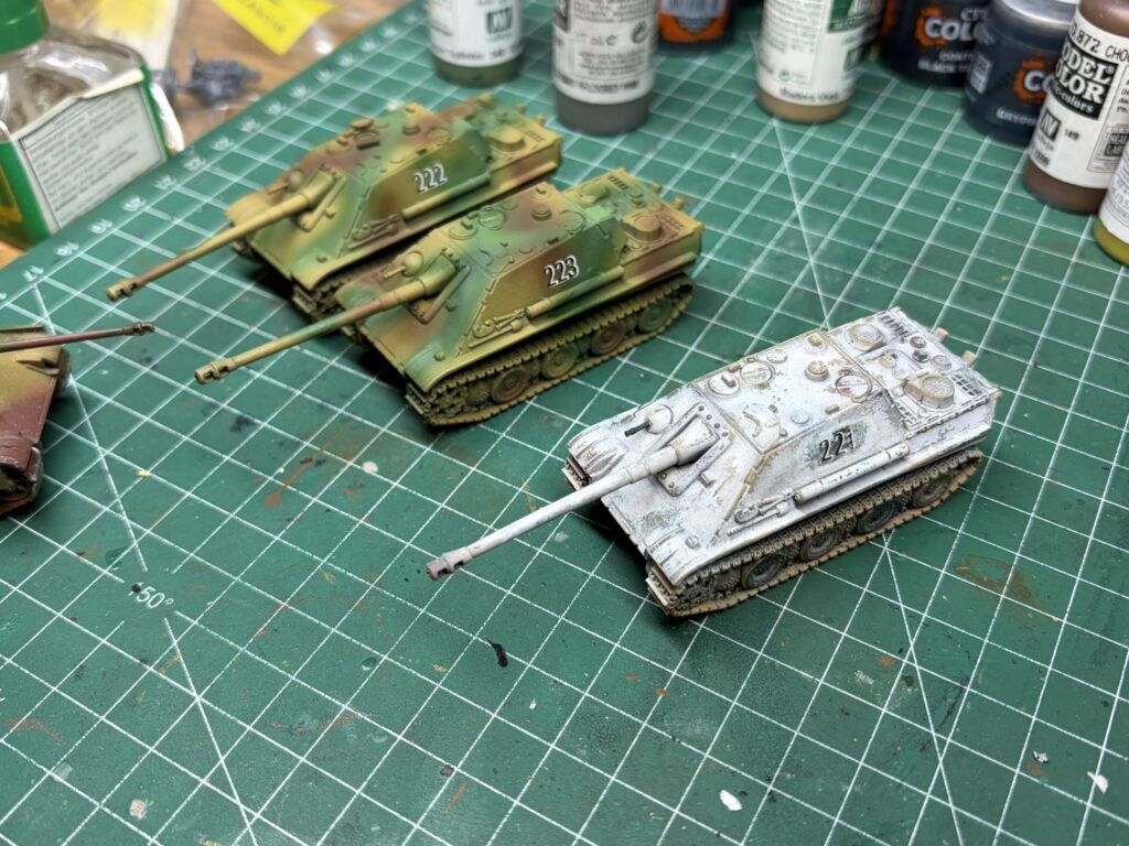 Flames of War: Ardennenoffensive 14. April 202612. April 2026 becko Battlefront, Bemalung, Flames of War Für unsere gerade erst gestartete Kampagne benötige ich noch ein paar zusätzliche Modelle für meine Deutschen. 3 Jagdpanther und 2 Panther.