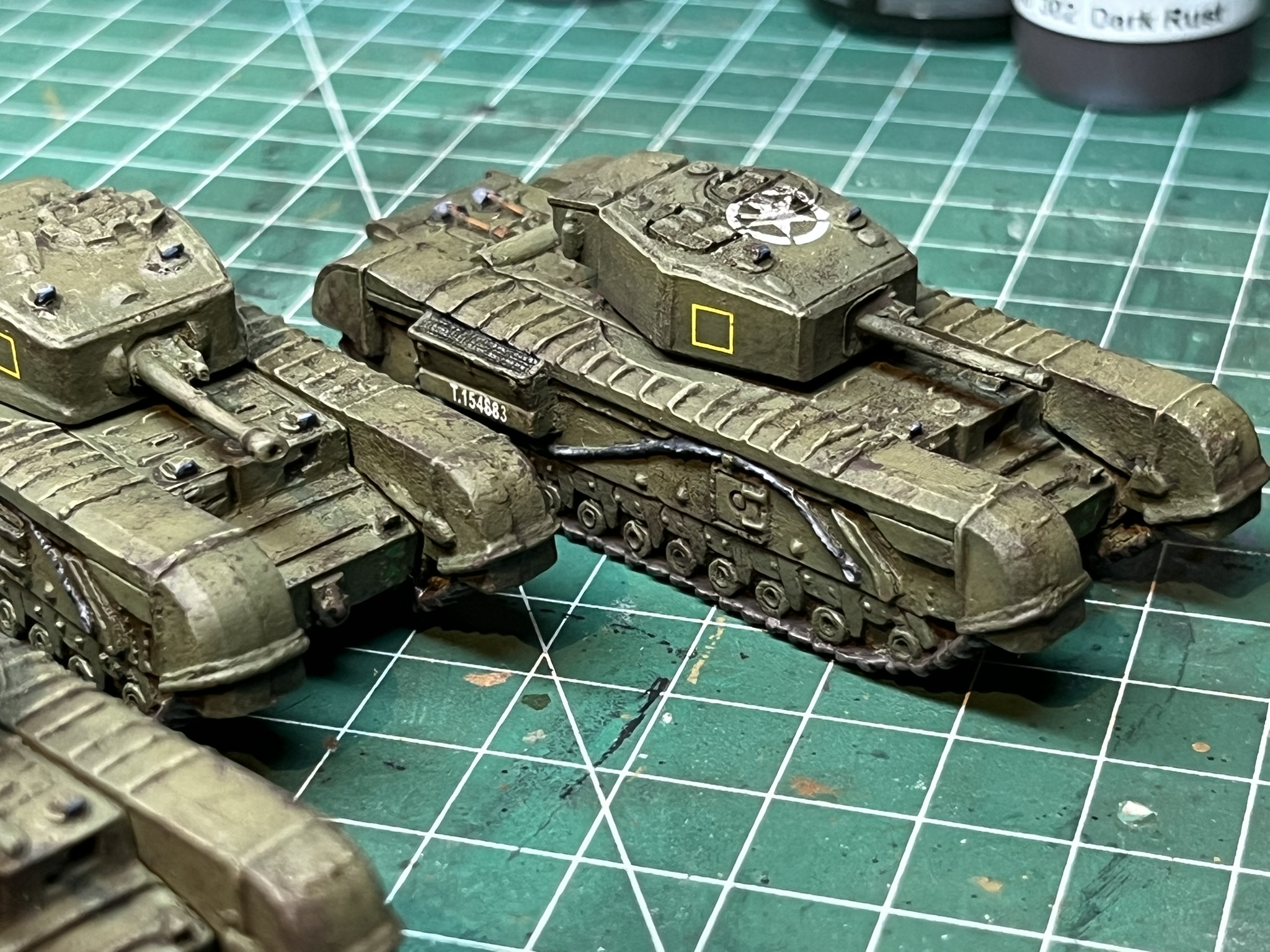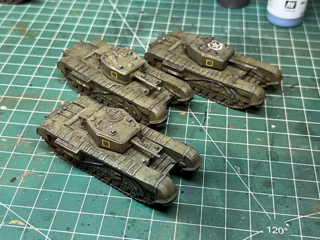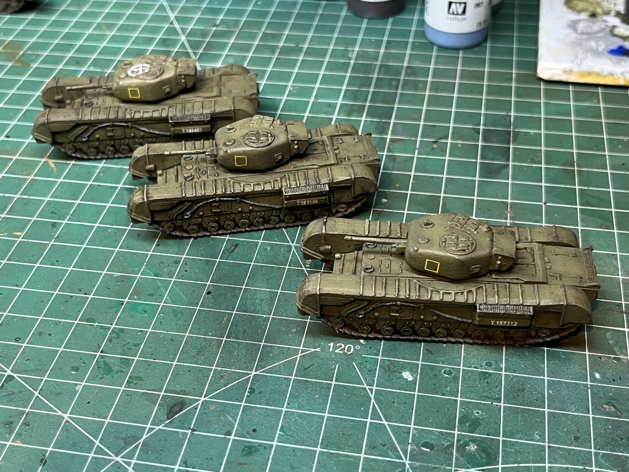 Ich habe aktuell 5× Churchill III, 3× Churchill IV, 2× Churchill Crocodile sowie Churchill III mit 75-mm-Kanone gebaut und bin mit der Bemalung beschäftigt.