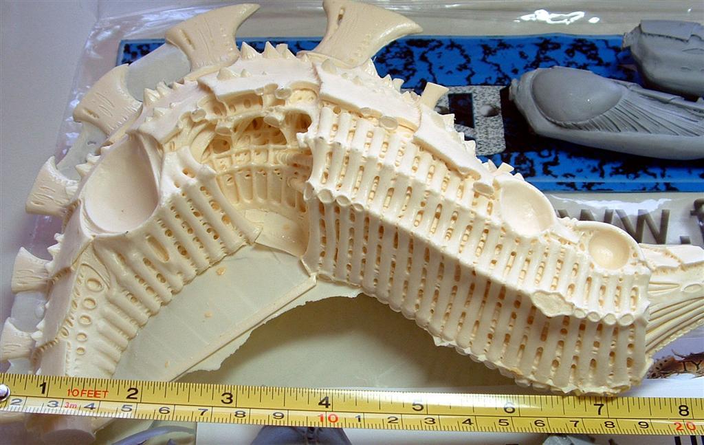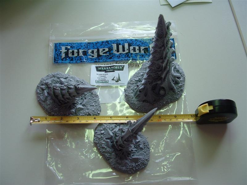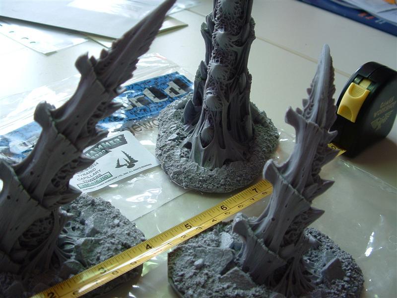 Alle Schläuche wurden dann komplett in Dark Angels Green bemalt und danach mit Snot Green, Goblin Green und Scorpion Green hochakzentuiert. Der letzte Schliff wurde mit Yriel Yellow gesetzt. Für die Schatten wurden die Schläuche nochmal vorsichtig mit verdünntem Badab Black gewasht.