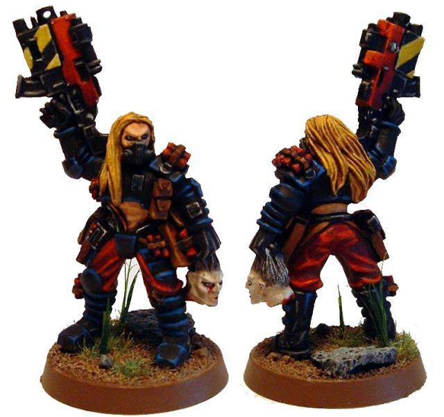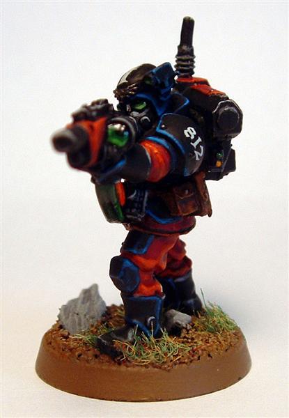 Um den Helm herum verläuft ein Schlauch, der ebenfalls in den Rottönen von Scab Red bis Fiery Orange bemalt wird. Hierbau sollte darauf geachtet werden, daß die Zwischenräume deutlich dunkler bleiben und nur die Wulste aufgehellt werden, so dass diese plastischer wirken.