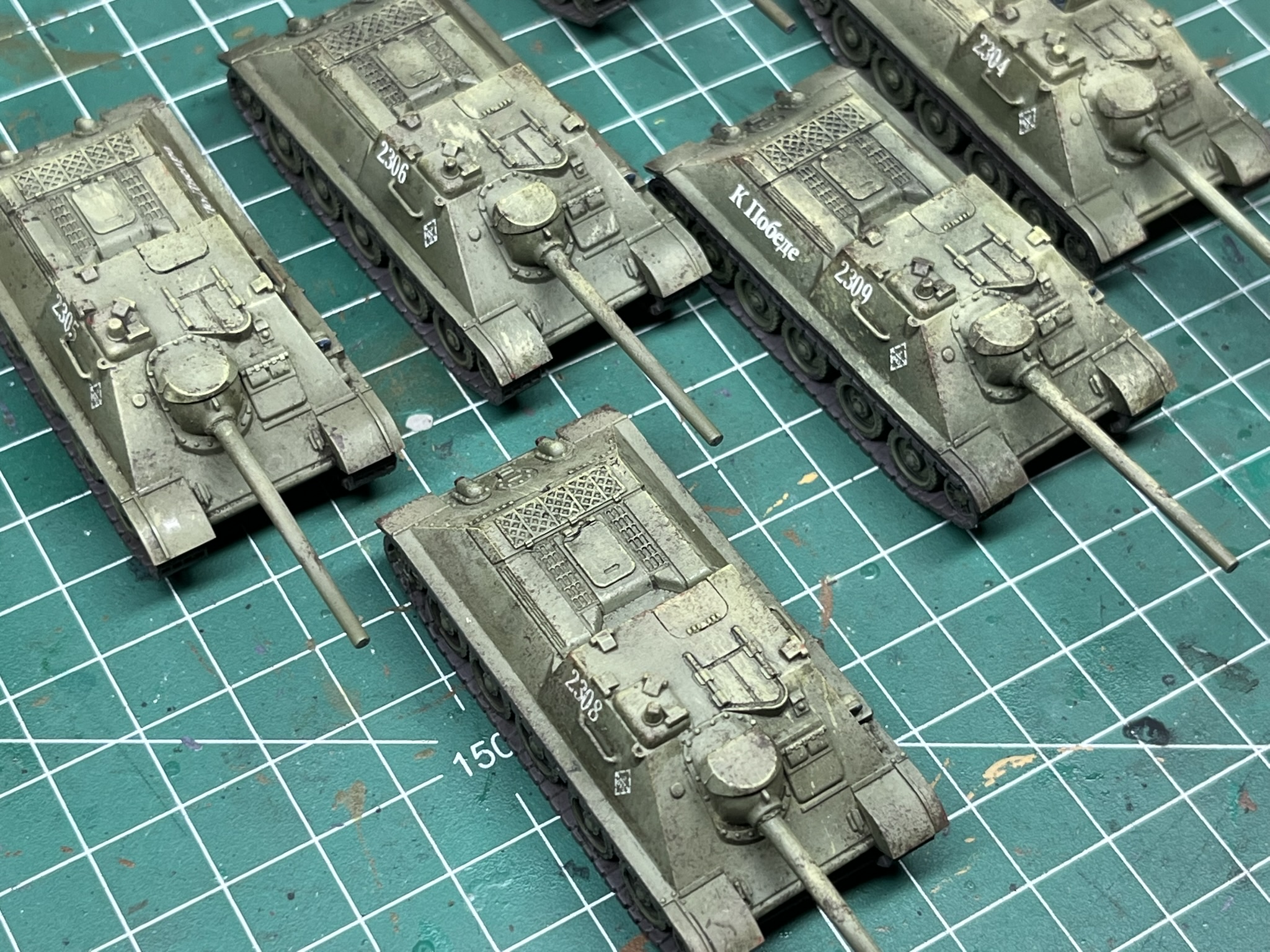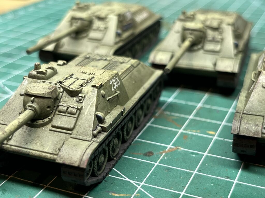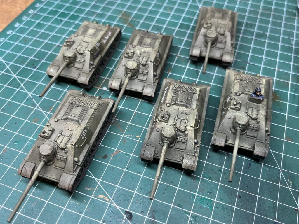 Als nächste stehen die Panzerjäger SU-85 und SU-85M auf dem Maltisch. dabei werde ich jeweils 6 Panzer bemalen.